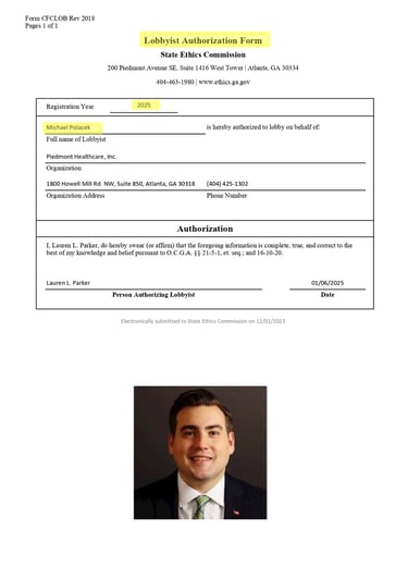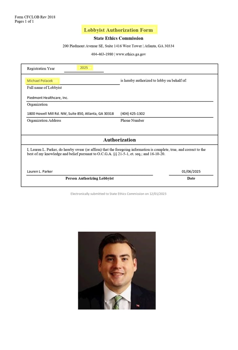 Michael Polacek is a paid lobbyist, registered with the State of Georgia. Lobbyists, big business, and special interests have no place on Peachtree City Council.
